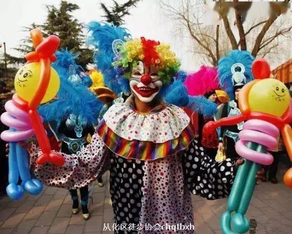 头戴滑稽大花帽