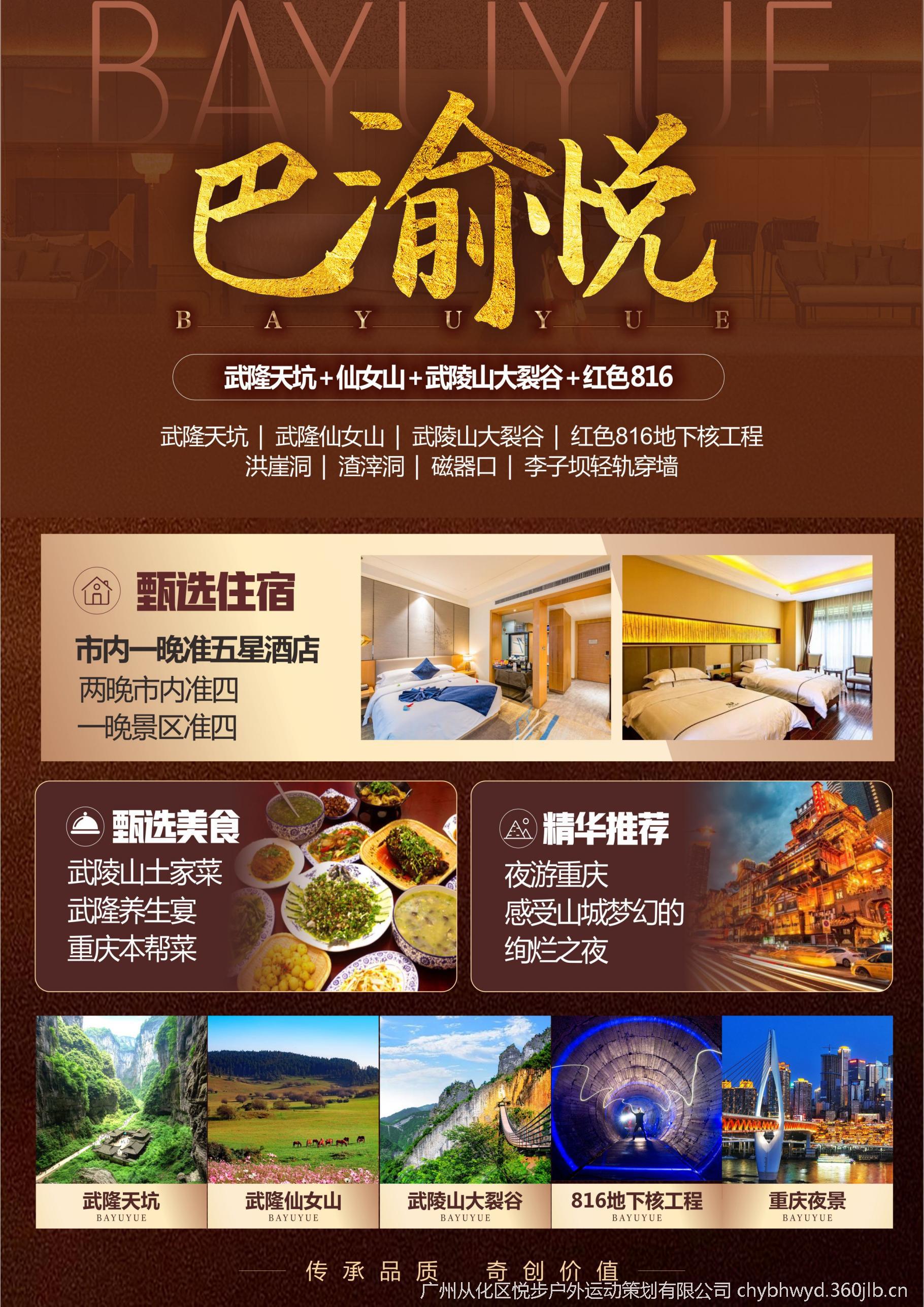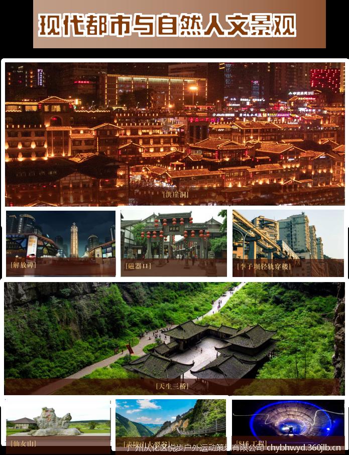 1、感受立体名城轻轨穿墙、武陵山大裂谷--《满城尽带黄金甲》、《变形金刚4》的取景地 2、渣宰洞揭开沉痛历史,重庆是“红岩精神”起源地 3、816地下核工程探秘:816地下核6万人去哪里了:6万士兵一夜间消失无踪,18年后再次出现