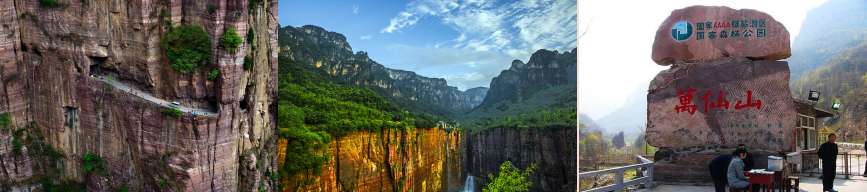 早餐后乘车【约2小时】赴国家AAAA级景区、国家地质公园,著名的旅游避暑、休闲胜地和影视写生基地---【4A万仙山.郭亮村】(参观不少于5小时)乘座景区巴士穿过“世界最险要、最奇特”的挂壁公路,又称—郭亮洞,这条绝壁长廊,是由郭亮村全体村民在完全没有机械工具的条件下,历时5年手工开凿而成,后抵达太行山深处、位于海拔1700多米悬崖上的山村—郭亮村,参观人间仙境-天池、崖上人家、观景台等景点。游览清幽山乡-南坪村,从旅游的眼光看南坪,是一个景点,从村政村务看,它是一个行政村,有11个自然村组成,每一个村都很小,有的只有3户人家,后入住酒店 ! ![]()