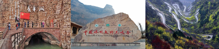 早餐后乘车【约1小时】赴国家AAAA级风景区、中国最美十大峡谷之一的---【5A太行大峡谷】,游览三九严寒桃花开的桃花谷景区,观飞龙峡、黄龙潭、九连瀑、 含珠、二龙戏珠、太行冰山等;游览【太行天路】,全程大约1小时,太行天路景区青天白云缭绕,崖上有人家如仙家,石头屋院和茂盛的果树、秋庄稼和谐连为一体。岭上层层梯田,小块地皆狭长,玉米和谷子交织铺绿。太行绝高处,山家于沟坎里种地见缝插针,青一色条石垒堰,构成绝妙国画素材。景色奇观,引人入胜。午餐自理后赴世纪工程、世界八大奇迹,被誉为“人工天河”的---【5A红旗渠】参观分水枢纽工程----【分水苑】,观大型浮雕、六幅彩照、纪念碑、分水闸、及相关展厅等;后游览【青年洞】是红旗渠总干渠上的咽喉工程,在太行山悬崖绝壁之上走宽8米高4.3米渠道,忆虎口崖除险队长任养成和社员腰系大绳下崖除险惊天动地的场面、思崖当房石当床的艰苦条件;回顾 【1959年至1961年期间由于大跃进运动及全国性的粮食短缺和饥荒;大环境下修建的生命之渠;】了解人民用自己勤劳的双手,在太行山脉上逢山凿洞、遇沟架桥、一锤一钎坚持苦干十年,建成的盘绕林滤山长达1500公里的引水灌溉工程;以展厅的形式了解红旗渠的修建过程;观一线天、双锁关、步云桥、山碑、青年洞、十水言碑、小三峡络丝潭等;后入住酒店。 温馨提示:【赠送的红旗渠表演由于特殊原因的,不去不退也不能折换人民币等同等东西,望周知】 ![]()