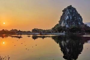 所谓“异”,是指每年的3月、9月中旬(即春分后、秋分前),晴天时傍晚6点左右,可见夕阳缓缓下坠,宛然嵌入于卧佛口中,遂形成星湖奇异的天象奇观“卧佛含丹