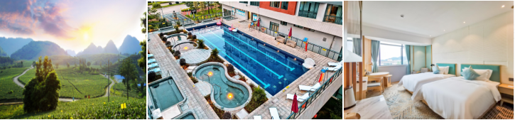 17:30入住【岭南东方精品酒店】岭南东方精品酒店缘起广州东方宾馆, 自1961年起,恪守至臻品质的经营文 化传承了半个世纪。品牌以精选、精致、精细的服务及设施,热忱发扬东方待客之道,融合 当地特色人文风俗,让每一处酒店都有独特的风情与质感,呈现东方传统 文化与现代生活方式的碰撞,工作与 生活在此平衡,入住期间客人无限次自由浸泡温泉。酒店设有283平方户外恒温泳池,健身房。晚餐客人自理,自费品尝英德特色美色。