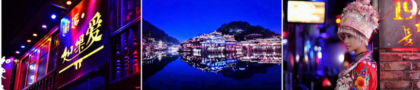 然后BUS赴凤凰古城(车程约4小时左右)晚上夜游凤凰古城,欣赏沱江两岸醉人【凤凰夜景】。夜游沱江——带您穿越千年凤凰的必游景点!它是《边城》里的古朴拉拉渡,“翠翠”就在这里痴痴的等待;它是血色湘西的黄金水道,千年历史迎来送往;它是沈从文走出湘西的必经之路,陪伴先生畅游文学的海洋;它是黄永玉泼墨咏叹的梦里水乡,炫丽的画笔时时不忘沾染沱江;它是凤凰古城浪漫且迷人的十里画廊!到凤凰记得让翠翠带您游沱江……