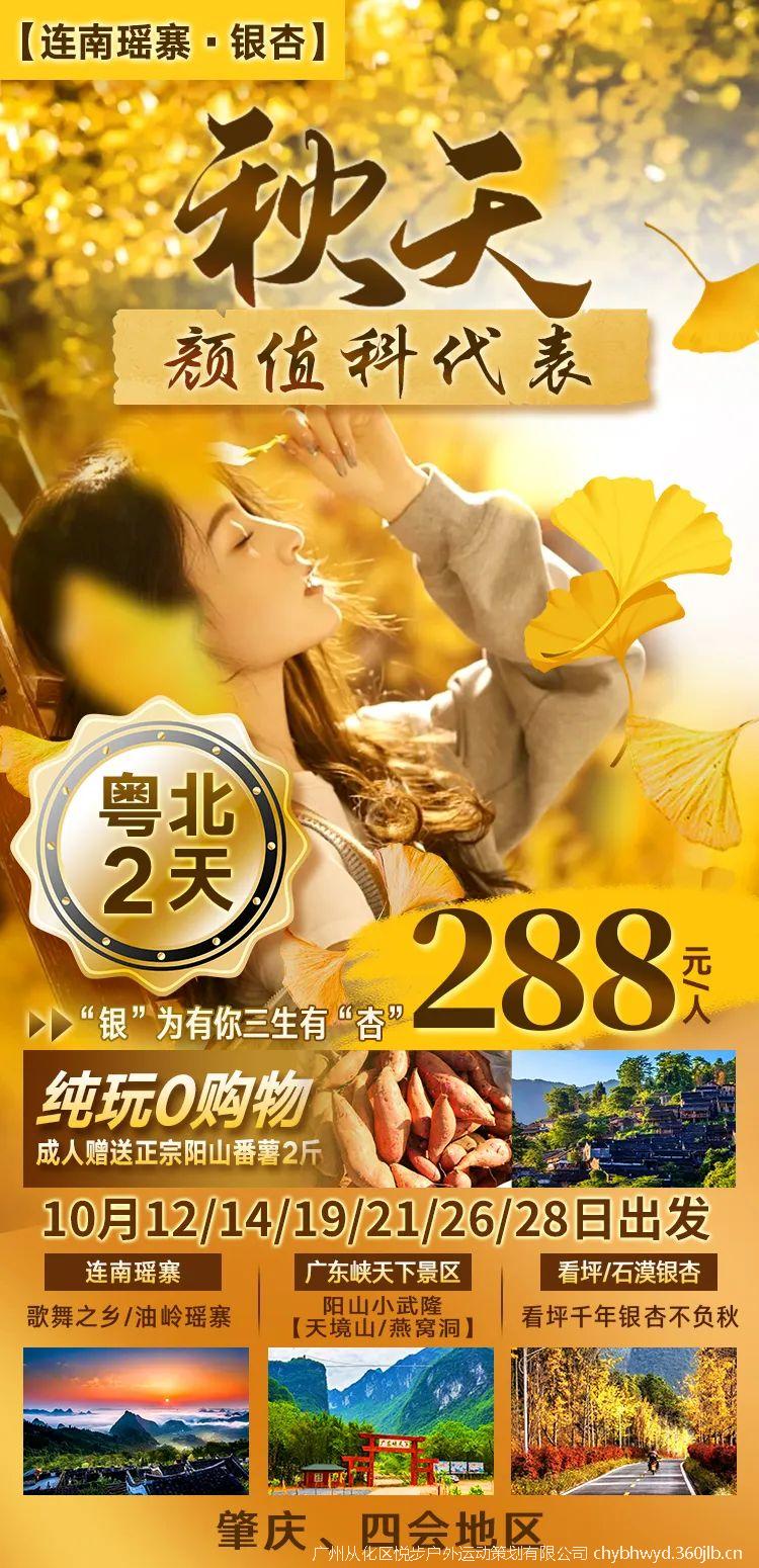09:30—11:30 前往【看坪千年银杏或石漠银杏】(根据银杏成熟情况安排观赏地点)秋冬是银杏最美的季节,一阵北风吹过,满树的叶子就全都变成金黄色了,与桔黄的秋阳相互辉映,如梦如幻,煞是美丽,千年的银杏树点缀在一望无际的金色稻田间,百年的甜锥林染黄了层层叠叠的群山。初冬暖阳下,老银杏树浓彩如油画。遒劲舒展的枝干,曲线优美的扇形叶子,散发着耀眼迷离的金光,与树底下的篱笆、远处的稻田一起,构成一幅悠然恬静的田园风光画。(银杏会因天气原因而早黄或迟黄,视天气而定,敬请留意)。继而前往参观瑶族电影《旺嘟之恋》、《广州跑男》拍摄地—【油岭瑶寨】(自由参观逛古寨)油岭村,是个纯瑶族村落,瑶寨四面环山,风光旖旎,生产生活习俗、节日、服饰、饮食、歌舞等瑶族遗风古俗在这里相传千年世代。是八排瑶历史传统文化艺术和民族民俗风情保留得较完整的地方,是 “歌舞之乡”,村民能歌善舞,多才多艺,被誉为“会说话就会唱歌,会走路就会跳舞”的村落。逃离大都市的雾霾、喧嚣,体验最纯粹的瑶族婚俗,牵手莎腰妹,喜当阿贵哥新郎官,在纯朴的民风民俗中沉醉,万亩高山梯田,令你流连忘返!