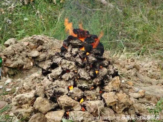 在堆泥堆的时候会安排一些小伙伴去捡柴火,大家分工合作。把柴火捡回来之后,就可以开始烧火了。把材火放到泥堆里面烧,一般烧一个半小时左右,就差不多了,烧到泥通红通红的。