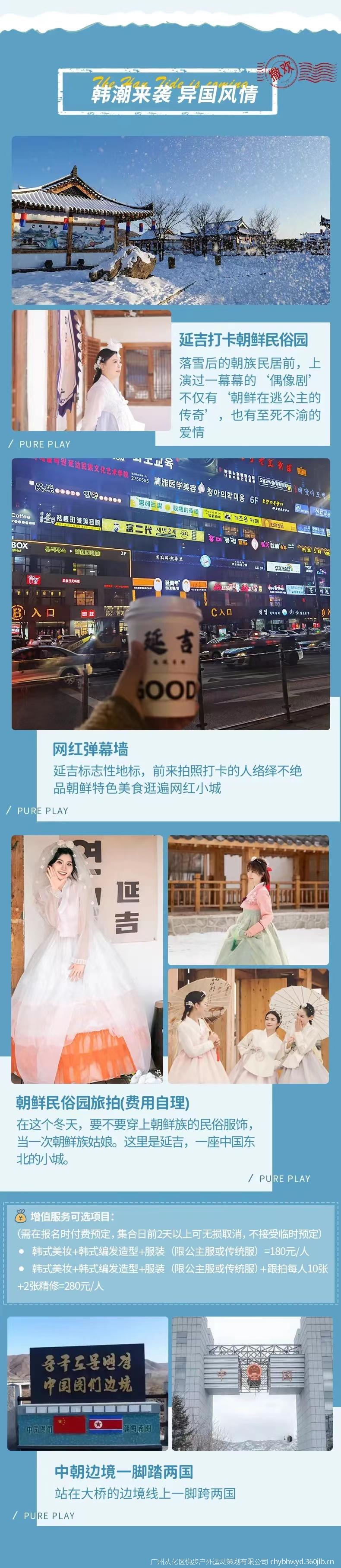 4、门票:雪乡门票+往返环保车、梦幻雪山徒步穿越门票、图们中朝友谊桥门票、朝鲜民俗园门票、长白山门票+往返环保车、雪地漂流门票、万科滑雪套票包含雪鞋雪板雪杖头盔使用+滑雪3小事+雪圈2小时+高山缆车观光1次;