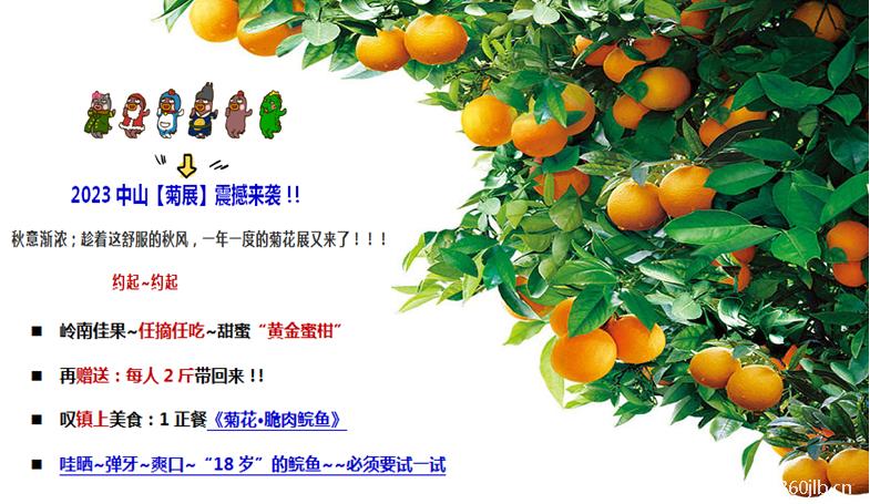 第一天:始发地—中国(2023)小榄菊展—采摘“大红柑”/“甜蜜柑”—返程 餐:午餐《中山脆肉鲩美食》 住宿:温馨的家 于指定时间集中出发;乘车前往【花开锦绣迎接(2023)中国·小榄菊展】(游览约1.5小时)中山的小榄被称为菊城每逢深秋大街小巷的人家就种满菊花;格外漂亮,而一年一度的菊花展盛宴… ![]()