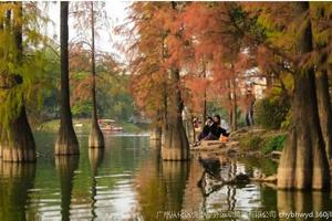 犹如大自然打翻的调色盘! 深秋时节,大夫山森林公园的“落雨杉”风景。