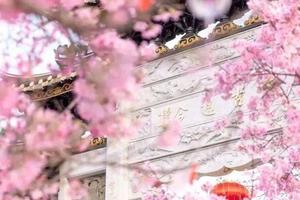 缤纷浪漫的樱花与亭台楼阁的古建筑相互映衬