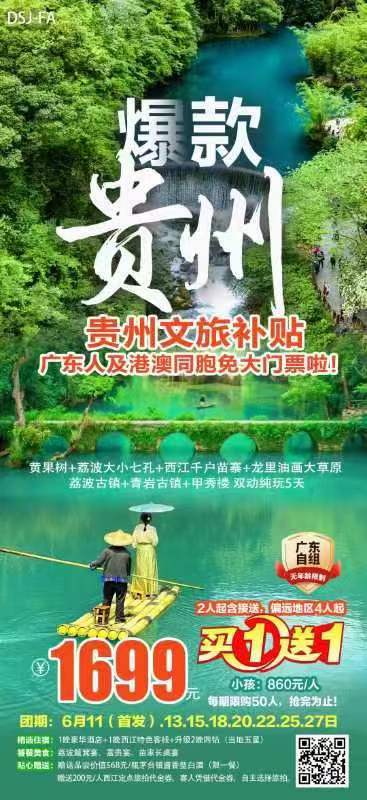 广东人福利。报名消费;双人1699元,单人团费850,必消费598,景交小交通140元