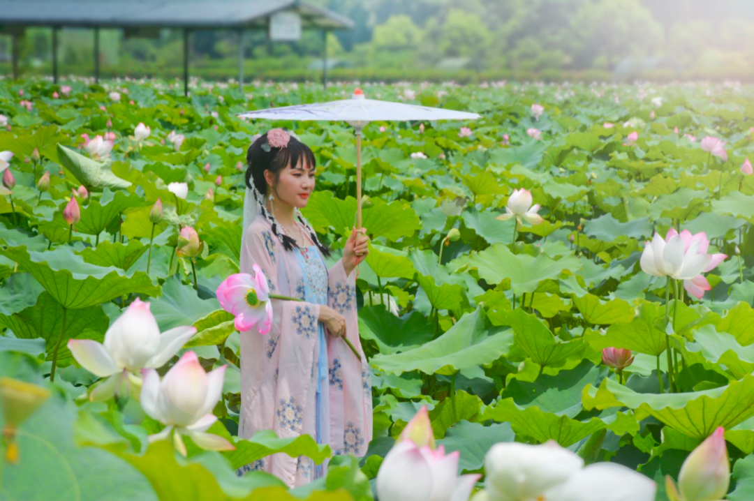 或旗袍,站在荷花边留影,又美又仙