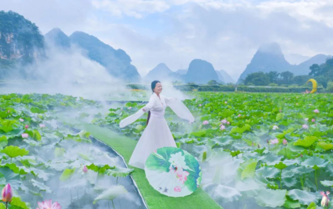 峰林晓镇已悄然迎来了一年一度的荷花绽放,盛花期在6月至9月期间。今年将在6月18日举办盛况空前的第七届荷花旅游文化节,届时将会举办荷花节系列活动,还有很多好玩项目等着你,千万别错过了哦。