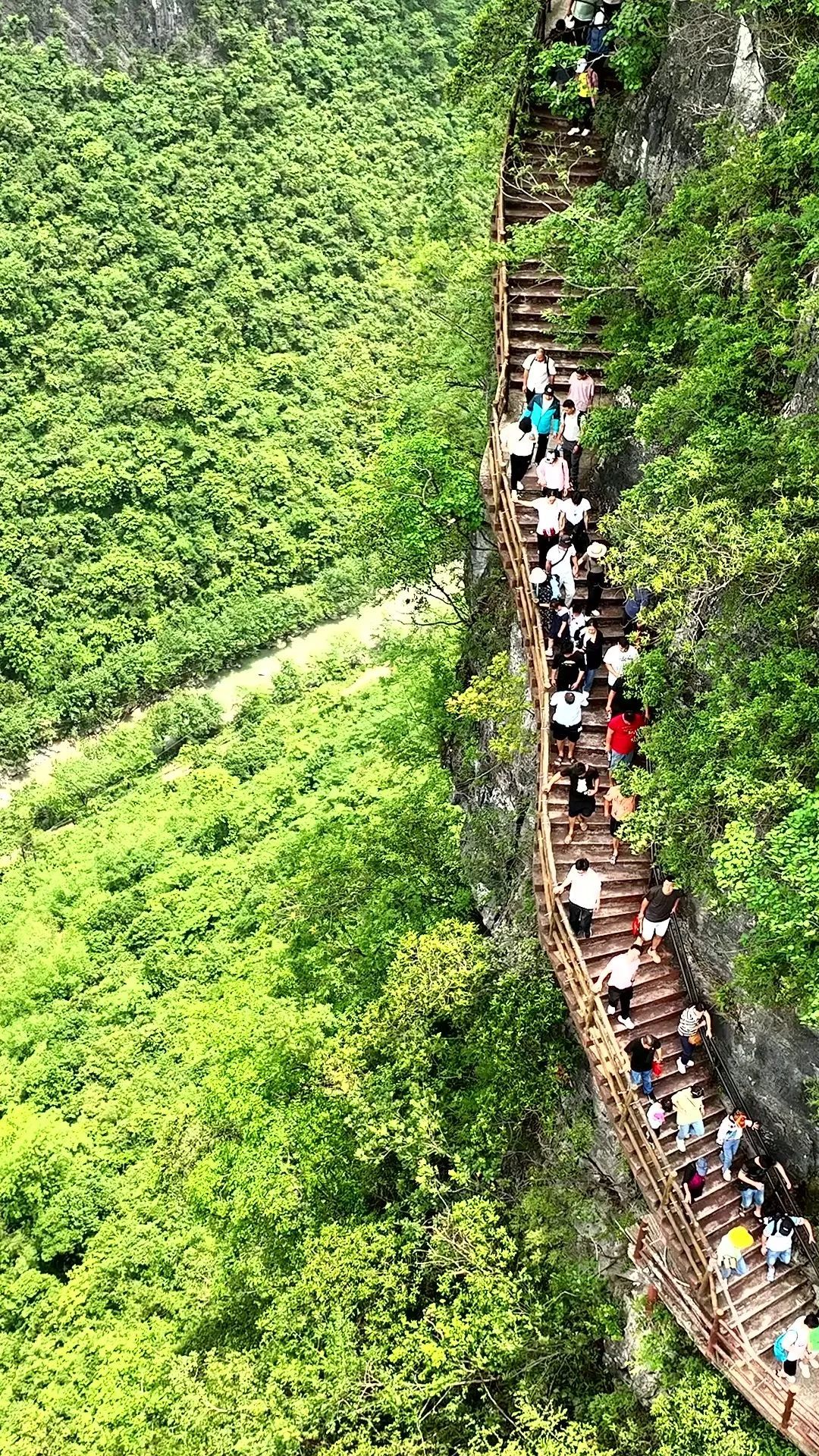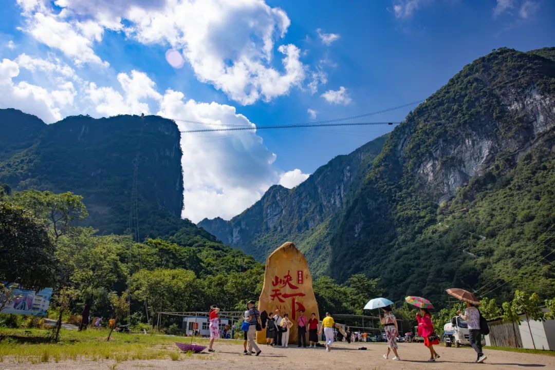 09:30-12:00抵达【广东峡天下景区】位于清远市阳山县岭背镇,这一带山岳壮美,峡谷幽深,千峰竞秀,碧水曲折。峡天下景区是目前国内罕见的集:山、水、溶洞、石林、草原、民宿为一体的综合性自然风景区,素有山比五岳、水秀桂林之美誉。目前已建成中国最长、垂直高度最高的天云渡玻璃吊桥,还将建亚洲最长的玻璃栈道,星空酒店、玻璃酒店、飞天摩天轮、高空缆车等。挑战【悬崖绝壁栈道】挑战1999级悬崖绝壁栈道天梯及穿过灵鹫宫天然喀斯特溶洞。悬崖天梯盘旋在断魂崖绝壁之上,39道拐如飞龙般缠绕在山腰之间,颇有一夫当关、万夫莫开之势。栈道做在断魂崖绝壁之上,非常惊险,行走上下山如华山之险,真是步步惊心。参观【灵鹫宫】灵鹫宫是缥缈峰的灵魂,坐落在缥缈峰断魂崖万丈绝壁之上。是一个天然喀斯特溶洞,每当气温骤降,洞口便会呈现吞云吐雾的神奇景象,当地人传说,那是神仙在洞里隐居修仙所吐出的真气。随着海拔高度的逐渐提升,视野变得越来越开阔,没多久,幽深峡谷群和星星点点的村庄便尽收眼底。