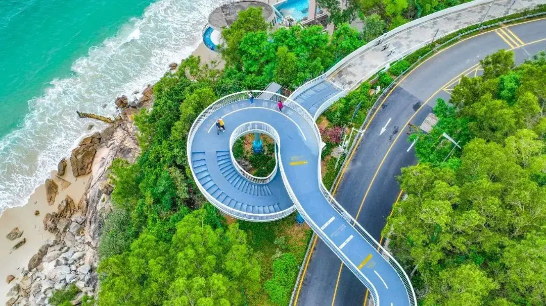 位于中段的空中栈道更是令人心旷神怡。180°无死角海景,螺旋型构造让人仿佛置身于空中,提供了极致的视觉享受。