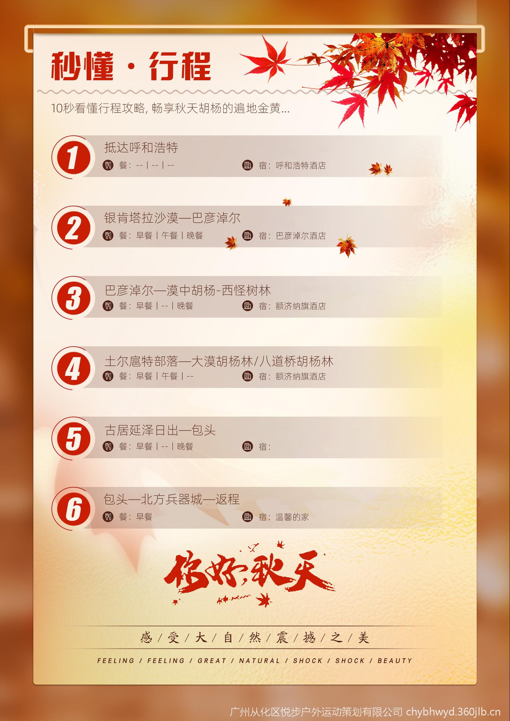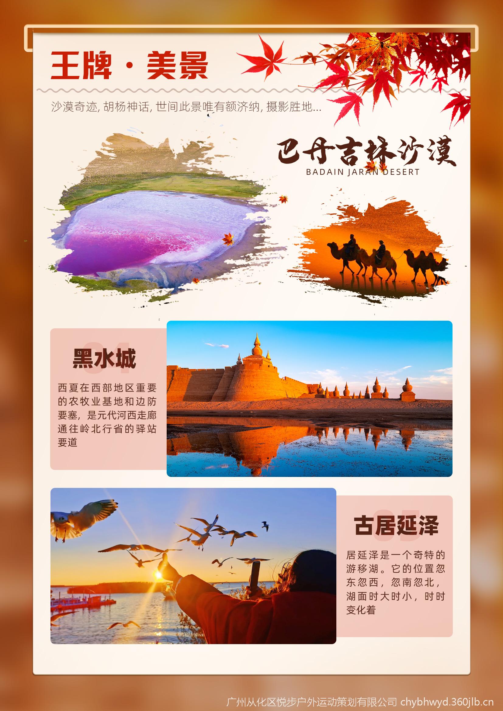 1. 额济纳秋季日落较晚,日落时间约为20:00左右,若大多数游客想观看和拍摄日落,我公司统一安排,若参加人数不足一半,游客需要单独接送或打车返回镇区,费用自理约100元;