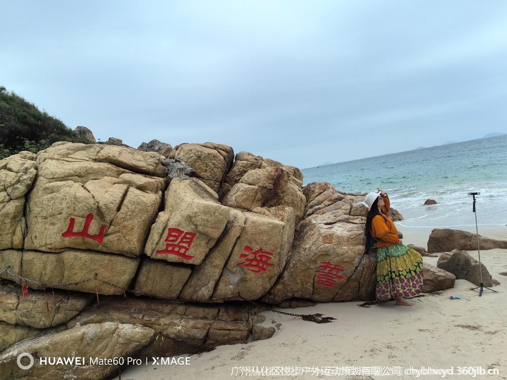 徒步的终点是一块写着“海誓山盟”的礁石