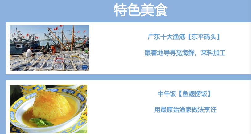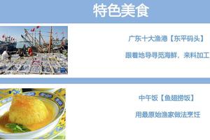 景点二:下一站,【阳江东平渔港】东平渔港位于广东省阳江市东平镇,是广东省重点渔港之一。东平一带的渔获历史应该可以追溯到千年前。东平中心渔港,素有“南海渔仓”之称,是全国最大的鱼翅产地。整个渔港面积达到1.5平方公里。在这里,可以看到各式各样的渔船,既有最原始的小木船、帆船,更有现代化的钢质渔船,千帆齐列,仿佛是一个无边的渔船森林。跟着地导采==购海鲜去附近餐厅加工,渔港买海鲜小技巧(仅供参考):中午12点到4点回港的是早上出海捕捞中午回港的小船 ,小船的优点 皮皮虾 大螃蟹 以及生猛小杂鱼 非常新鲜 你可以和船家直接砍价 在和船家砍价最据有特点是如果你能一口价全包 船家回给你个最大的优惠,因为他省去了卖货时间成本 ,晚上6点到9点是大船回港时间,最常见的 大狗虾 大螃蟹 红衫鱼等深海新鲜杂鱼 来到大船买海鲜的优势在于 品类多 你想吃到的 这里基本能满足你。