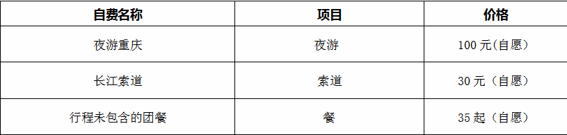 费用不含仙女山小火车25,不含渣滓洞换成车20,不含行程中注明的自理项目、个人消费(如酒店