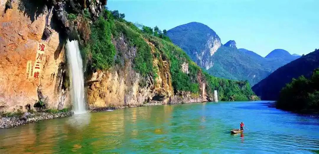 三峡峙立相对,两岸岸壁奇异,时有飞瀑直流