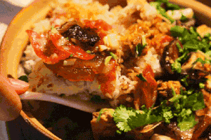 东陂腊鸭挑选上好麻鸭,用牙签扎上小孔后再进行风干的腊鸭,肉质紧实,香浓有嚼劲用来煲粥或炒菜,美味至极