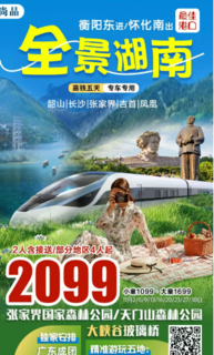 2099元--精准游玩五地五天:韶山|长沙|张家界|吉首|凤凰