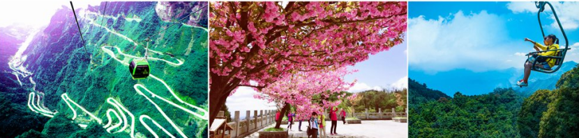 核心景区: 天门山&森林公园&玻璃桥/袁家界·天子山·金鞭溪·十里画廊/体验世界最高户外电梯—百龙电梯/世界最长空中索道+鬼谷玻璃栈道