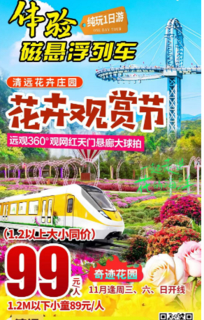 10:30-11:30抵达【体验清远磁浮列车】(双程票)。