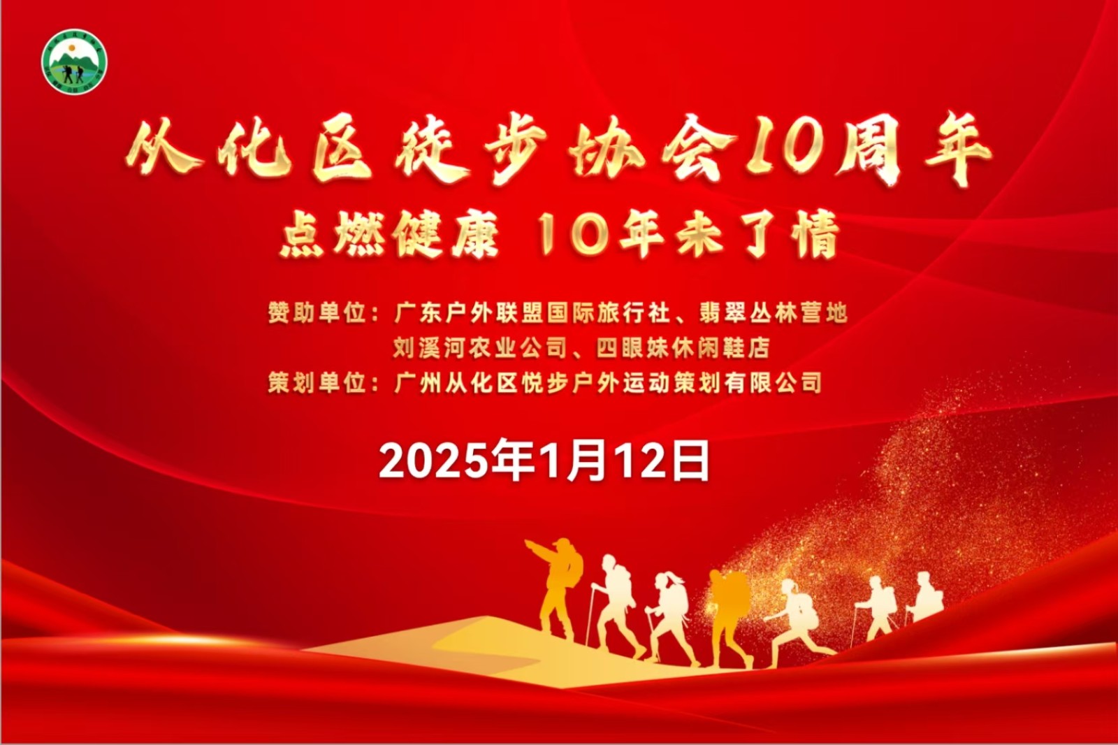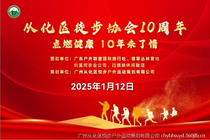 2025年1月12日约您-参加区徒步协会年会10周年庆典,一场自编自导自演的草根文化登台,从化太子山庄等您,太子山庄当天会开放桌球、乒乓球,KTV,篮球场给我们娱乐。我搭舞台,您开秀!十全十美--徒步路上偶遇您!您遇见未知的自己!徒步协会健康平台有赖您的支持!由区徒步协会平台派生出来很多健康小团队,欢迎回娘家看看,更欢迎有才艺的小团队登台。