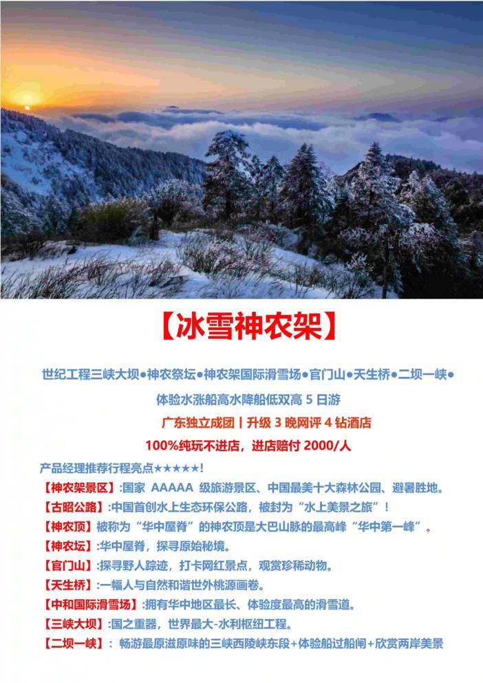 二期【1月18-22日】高铁5天纯玩【冰雪神农架】三峡大坝●神农祭坛●神农架国际滑雪场●官门山●天生桥●二坝一峡 [复制链接]