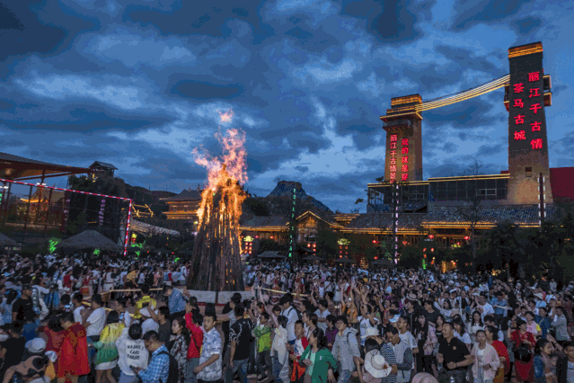 丽江千古情景区位于玉龙雪山脚下,是一座活着的茶马古城,包括茶马古街、那措海、雪山沙滩、民族村落等主题区和数十项科技互动项目,展现了丽江千年文化和历史风情。以《丽江千古情》为代表的演艺秀或恢弘大气、或惊心动魄、或缠绵徘恻、或幽默诙谐,用真实的情景再现和生动逼真的表演,演绎了历史与文化传奇。游客在观演过程中,可身体力行地参与歌唱与舞蹈,在互动中踏响节拍、释放体能挥洒热情。