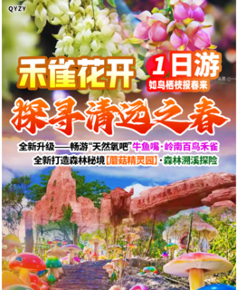 ⑴:牛鱼嘴风景区集山、水、洞林、瀑、湖、多种景观融合,湖光山色令人赏心悦目。 ⑵:被誉为禾雀花森林王国, 2-4月是禾雀花最佳观赏期,一个个像小鸟一样的花儿挂满枝头。⑶:森林探秘这里目之所及都是巨型的精灵、藤蔓、蘑菇山间瀑布、小溪、森林。 ⑷:一价全含:景区大门票+森林探秘+萌宠乐园+溯溪探险+网红佛手+无动力水上拓展 ⑸:午餐品尝【百花齐放宴】