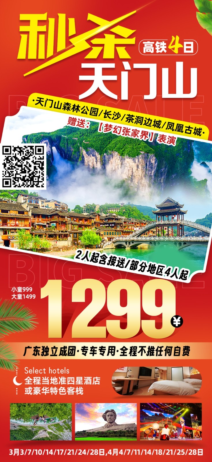 1299元--秒杀天门山-茶洞边城·浪漫凤凰--遇见我们·爱上湖南