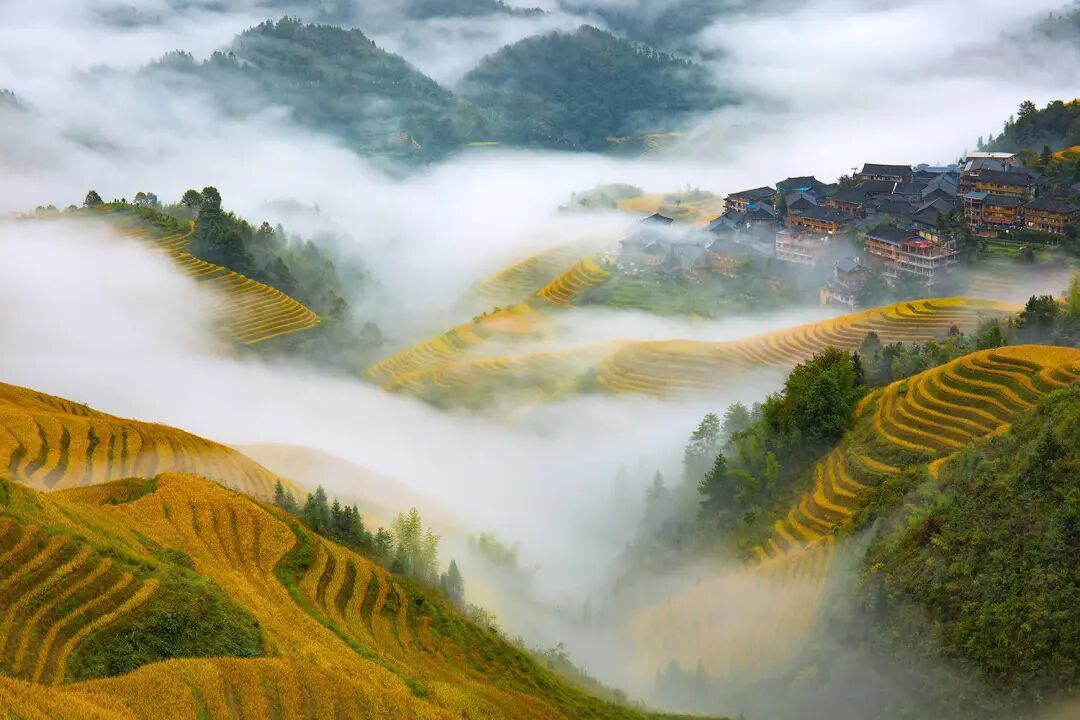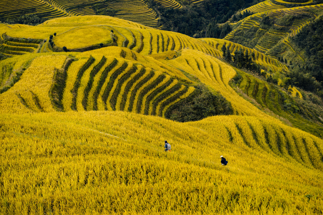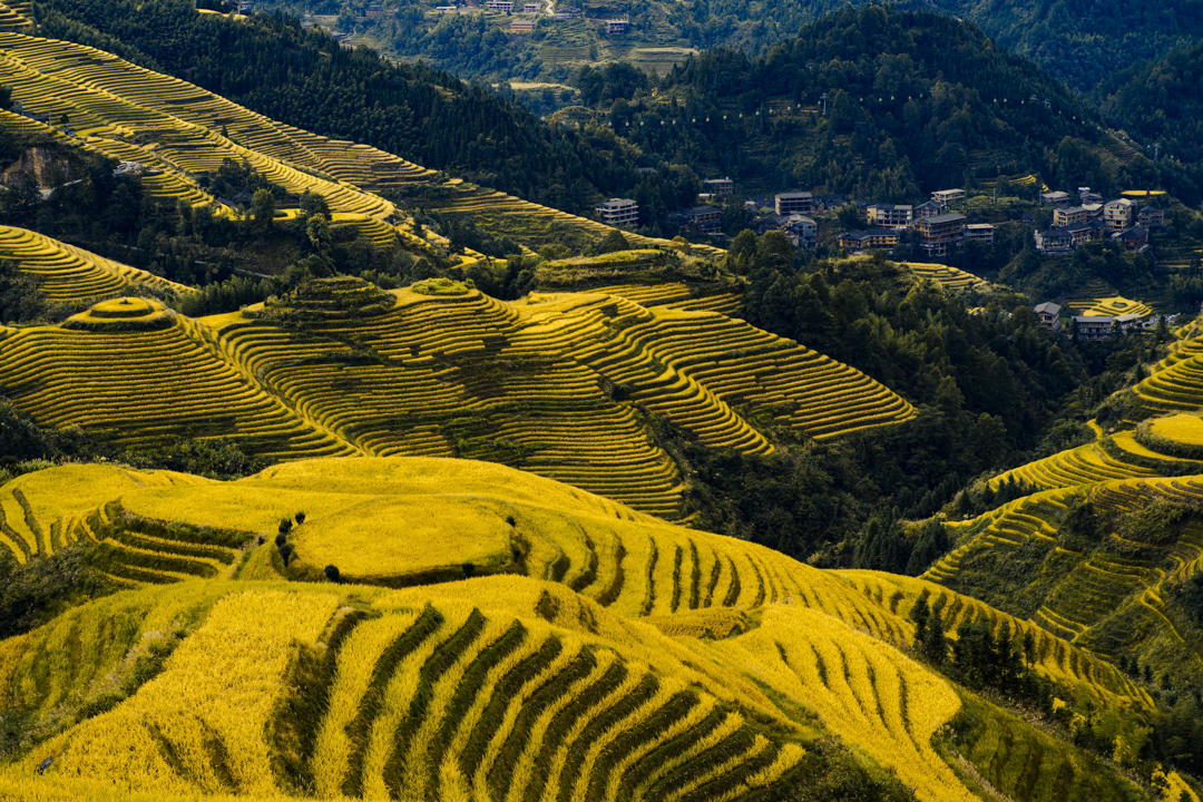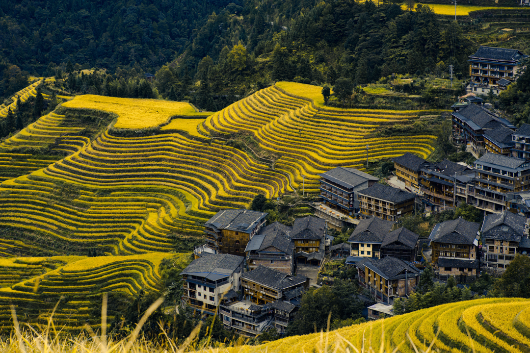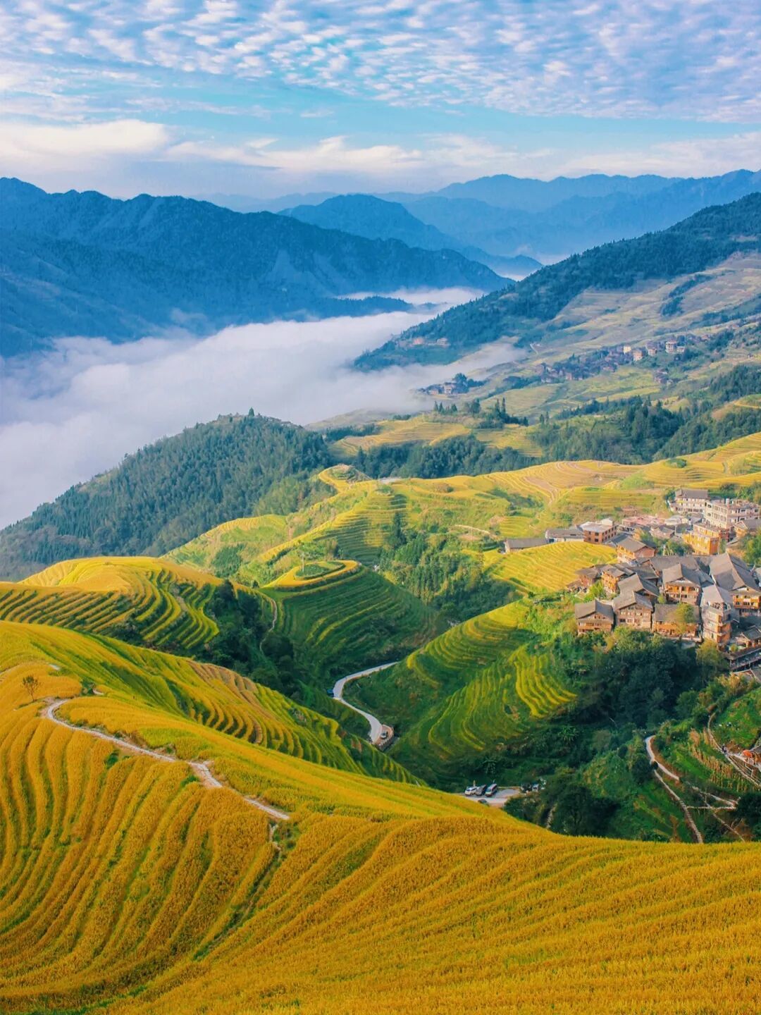 9月底到10月中旬是龙脊梯田最美的季节,整个梯田从绿色渐变成了金色。这个季节的龙脊梯田,真的每一寸都美到令人尖叫。