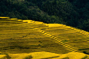 每年此时,这片梯田,宛如一颗黄色宝石,镶嵌在山中,越是进入越是令人感叹,感叹其如此壮丽如金色大海,感叹其如此丰收预示着美好的明天。