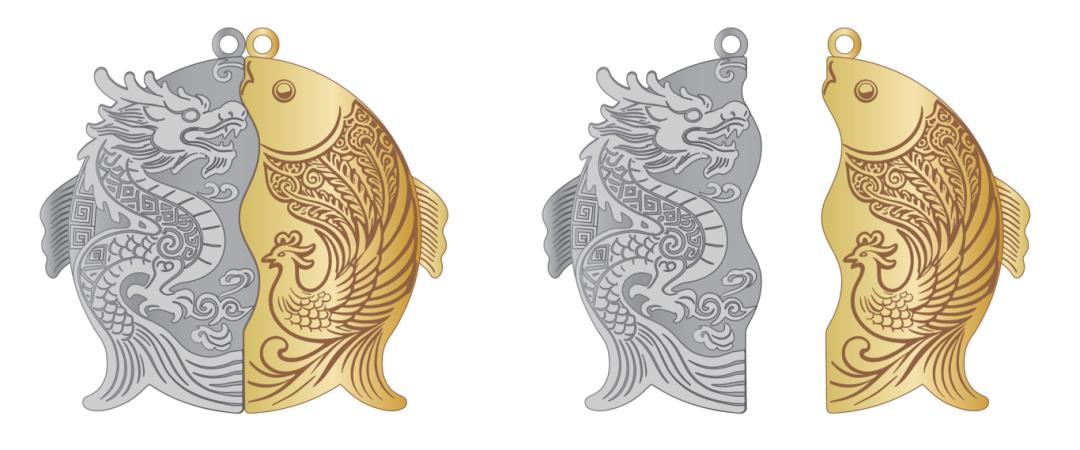 ①纪念奖牌整体为鲤鱼形状,由左龙、右凤两部分拼接而成,领取物资时先领取左龙部分的奖牌,完成迎新年欢乐行徒步活动后再凭号码布领取右凤部分的奖牌。集齐龙凤牌,福气挡不住!