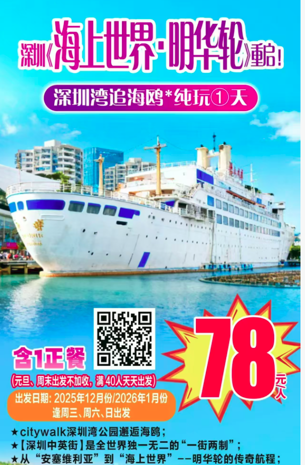 78元,深圳《海上世界·明华轮》重启!中英街--深圳湾追海鸥·纯玩1天