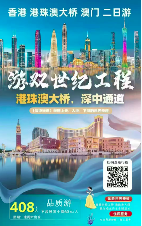 468元--深中通道+香港+港珠澳大桥+澳门二日游